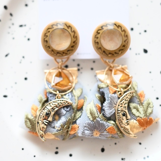 月×刺繍リボン耳飾りno.e10-15