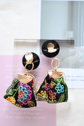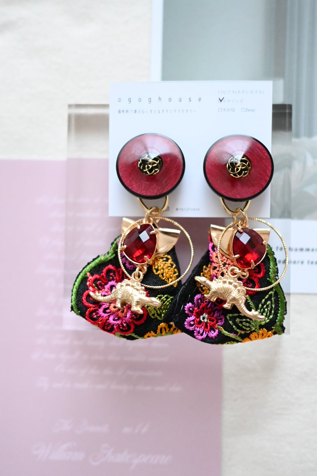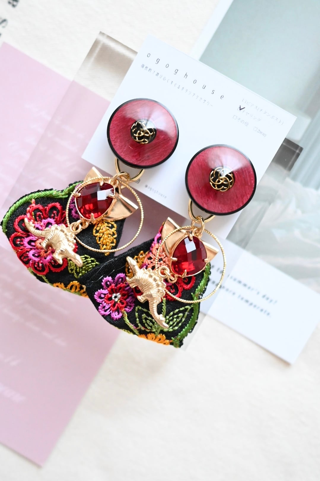 刺繍リボン×恐竜耳飾りno.e10-3