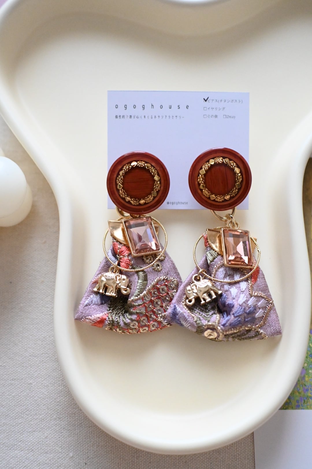 個性的で可愛らしい刺繍リボンとぞうモチーフチャームが