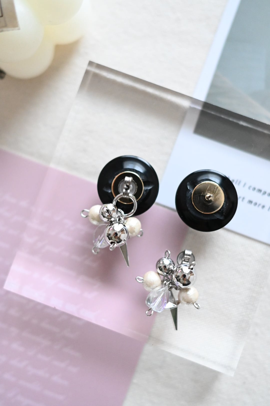 落ち着いた雰囲気の上品ボタンとコットンパールをあわせた耳飾り。