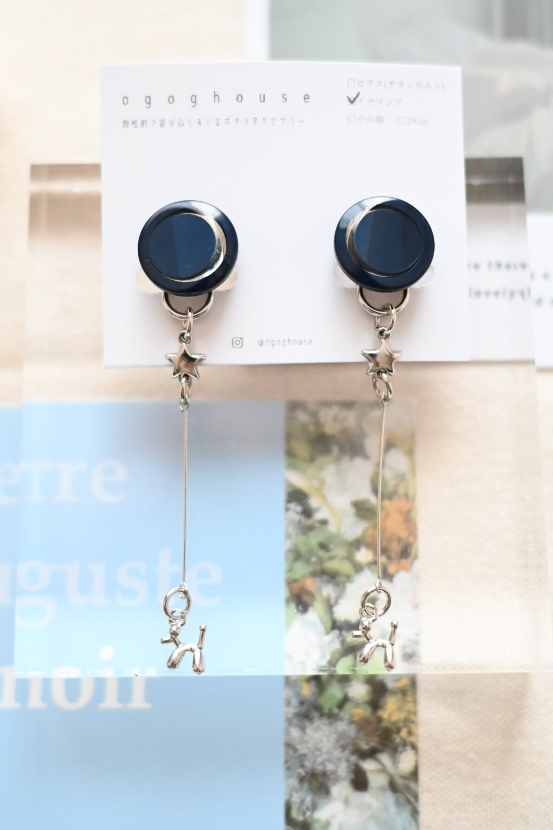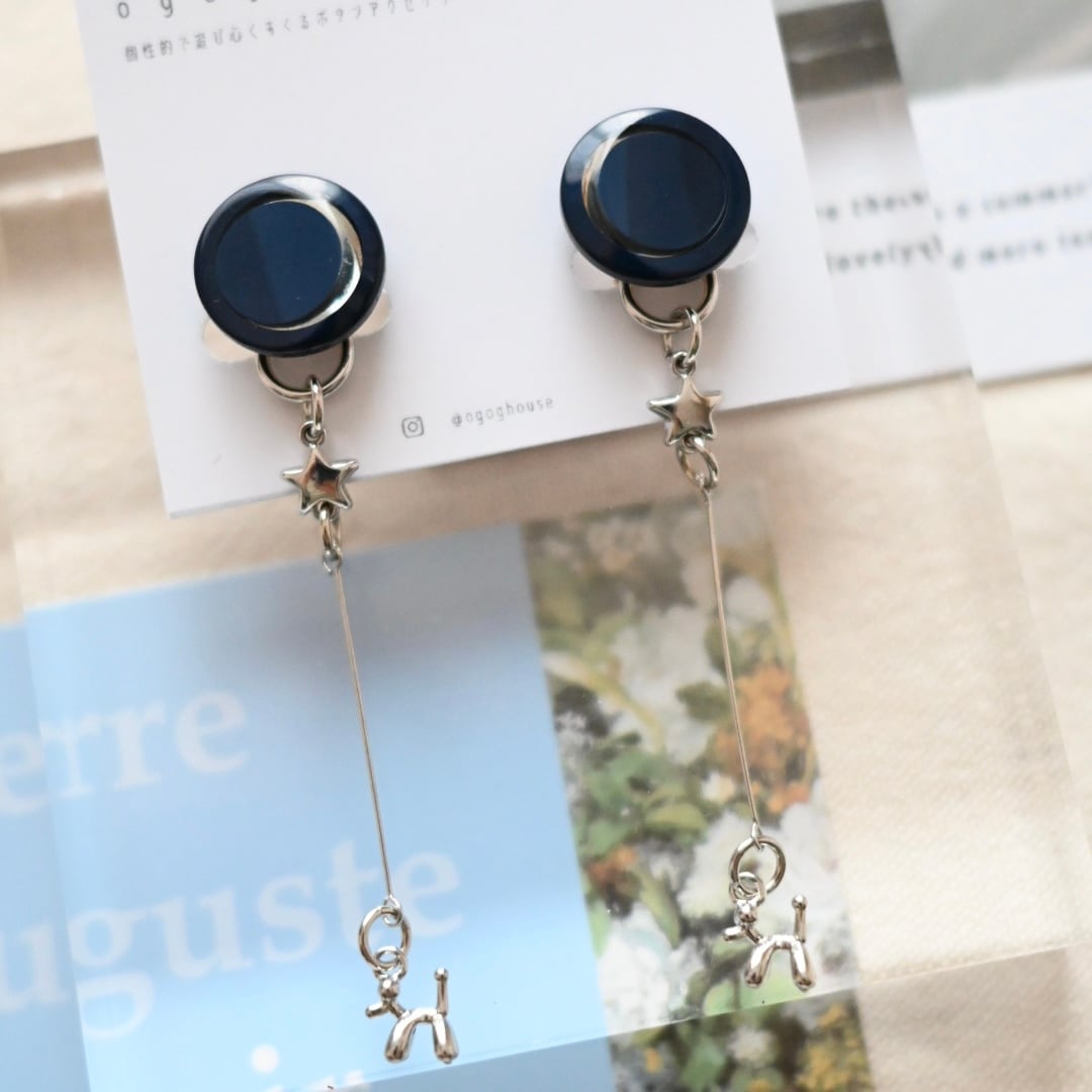 小さなわんこチャームと星のチャーム、落ち着いた雰囲気の小ぶりボタンを